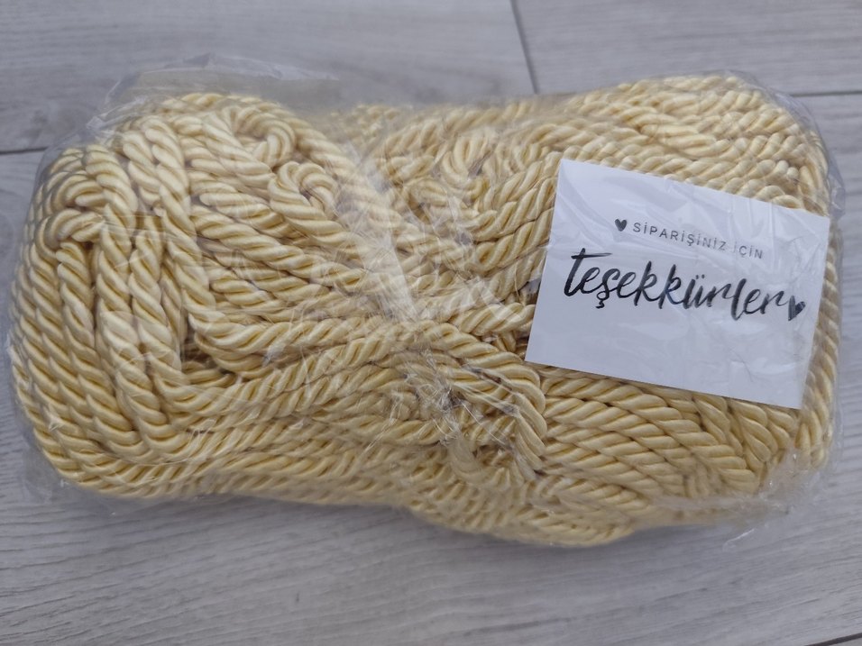 Yumuşak ve rahat dokulu, pastel tonlarda bej . Paketinde "teşek" yazısı bulunuyor. supla ipi 50 metre sıfır kullanılmamış ambalajındadır