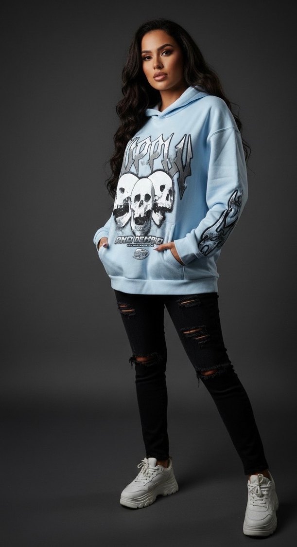 Supply demand marka swearshirt bebe mavisi renk içi polarlı kalın önü ve kolları baskı detaylı oversize kalıp XL beden unisex yeni sıfır ürün 65% cotton 35% polyester