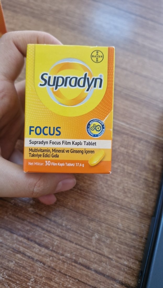 Supradyn Focus, multivitamin, mineral ve ginseng içeren film kaplı tabletler halinde takviye edici gıdadır. Enerji ve odaklanmaya destek sağlar. sıfır eczane ürünü