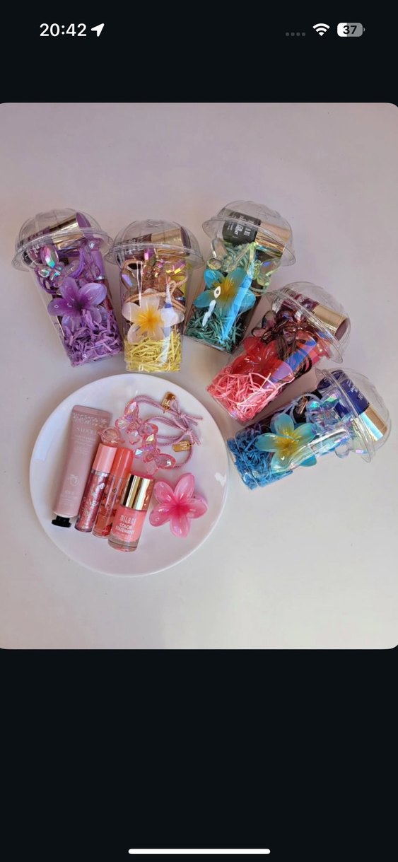 Rengini seç, Süpriz bardağı kap! Çiçekli dekoratif kaplarda çok renkli dudak parlatıcıları seti, dudaklara parlaklık ve renk katmak için ideal.