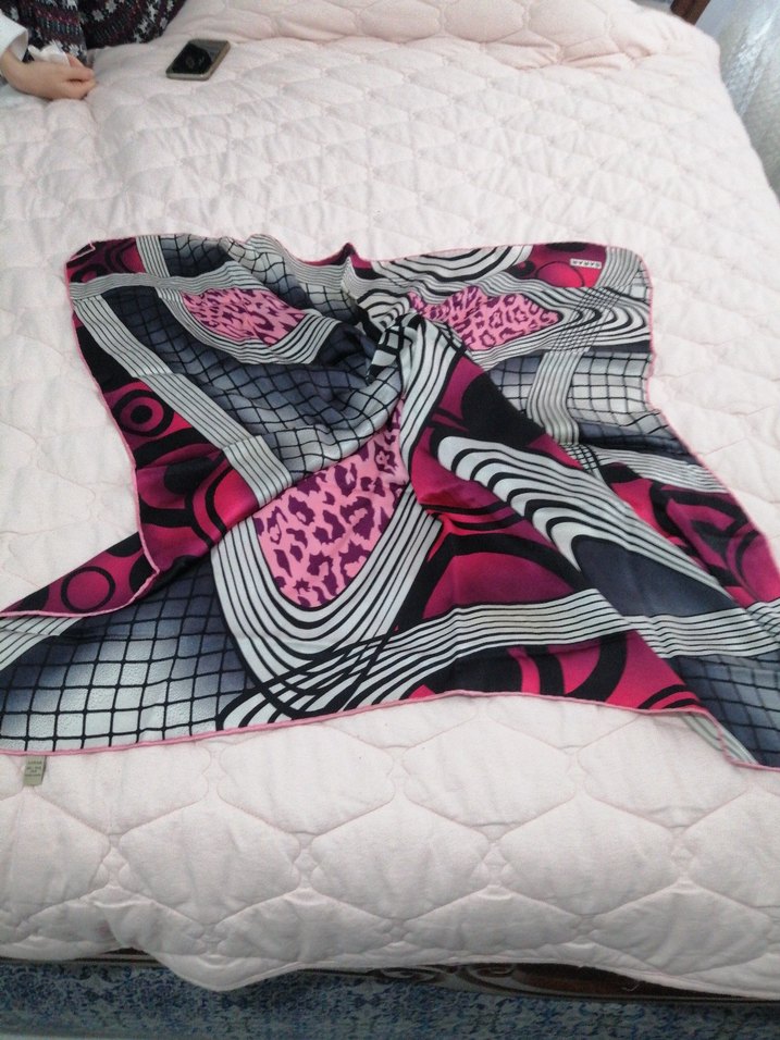 İpek eşarp. Birkaç kez kullanıldı. Sura ipektir.