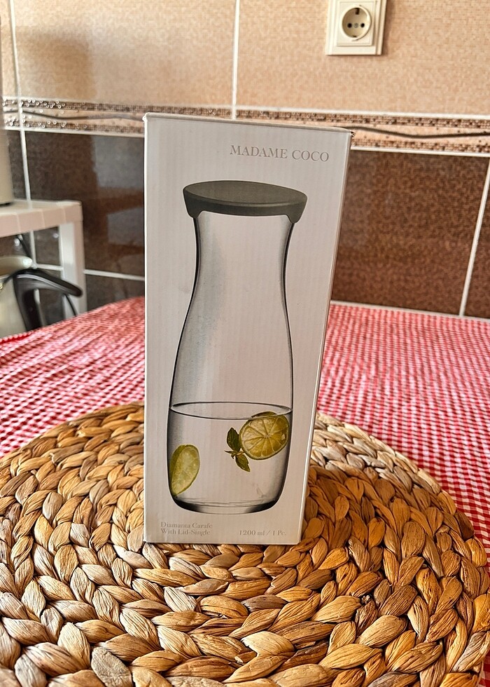 hiç kullanılmadı. kutusu ıle duruyor.1200 ml cam sürahi veya vazo. kapağı slıkon madame coconun kendı urunu.