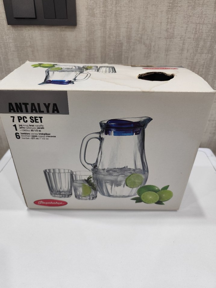 cam sürahi ve 6 cam bardaktan oluşan 7 parça set.