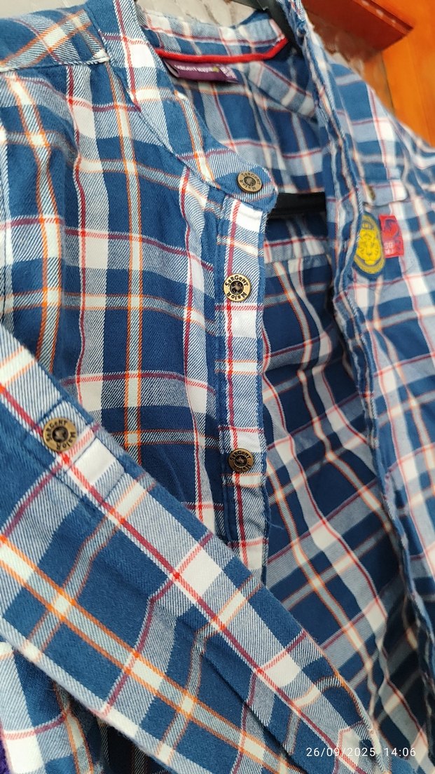 Mavi kareli pamuk gömlek, yakalı ve düğmeli, uzun kollu, rahat kesim ile çocuğunuz baharın keyfini çıkarsın. 2/4 yaş arası