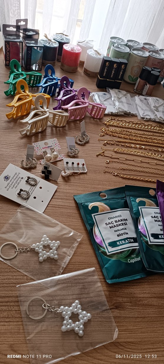 Çeşit çeşit sürprizler. 12 adet aksesuarlar. Bileklikler, küpeler, saç maskeleri, tokalar, rujlar, ojeler, makyaj süngerleri, kolyeler, kutu ıslak mendiller, anahtarlıklar... 1 kaşık 250₺ sipariş oluşturabilirsiniz