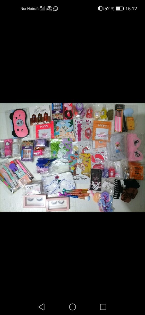 Sahte kirpikler, rujlar, yüz maskeleri, oje ve çeşitli renkli kozmetik ürünlerden oluşan makyaj ve güzellik seti. 6 ürün gönderiyorum