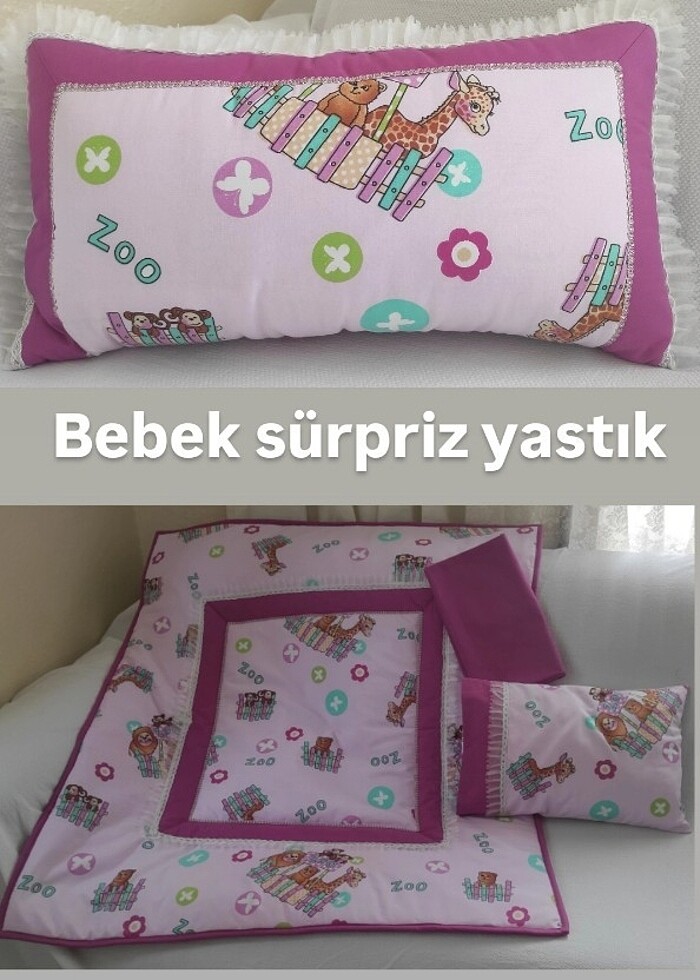 açıldığında Elyaflı Yorgan olan fermuarlı sürpriz yastık %100 pamuklu Yorgan, çarşaf ve yastıktan oluşan sıfır kendi diktiğim üçlü takım #bebek sürpriz yastık #elyaflı bebek yorgan #bebek battaniyesi