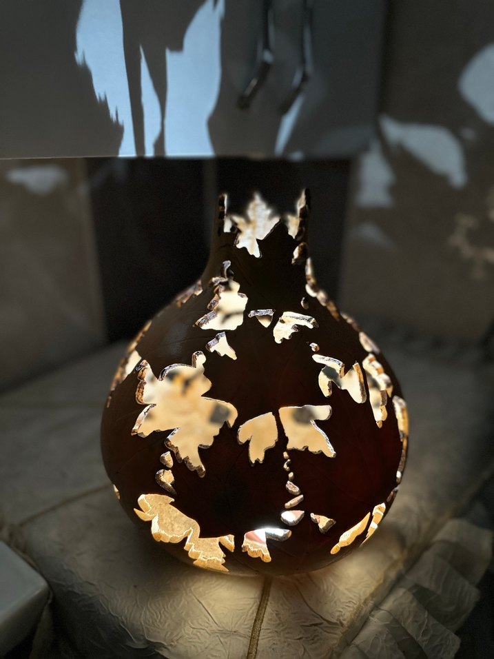 Aydınlatıldığında ışık oyunları yaratan kesme çiçek desenli lamba. Ampulsüzdür.