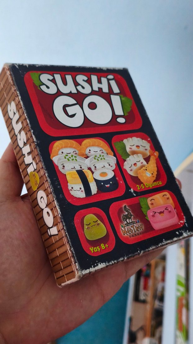 Sushi Go! renkli suşi temalı kartlarla oynanan 2-5 kişilik bir kutu oyunudur. 8 yaş ve üzeri için uygundur. Kutu hafif yıpranmıştır. kutu oyunu