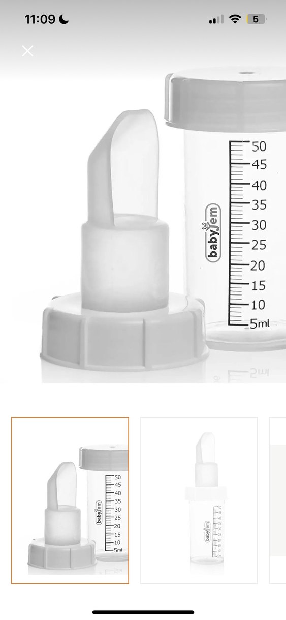 50 ml kapasiteli, 5 ml aralıklarla işaretlenmiş süt kaşığı. Süt kızımın genzine kaçıp burnumdan geldiği için almıştım ancak hiç kullanmadı.