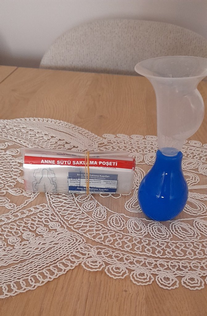 2 kez kullanıldı yanında anne sütü saklama poşeti ve silikon göğüs ucu koruyucu göndereceğim kaynatarak sterilize edilebilir