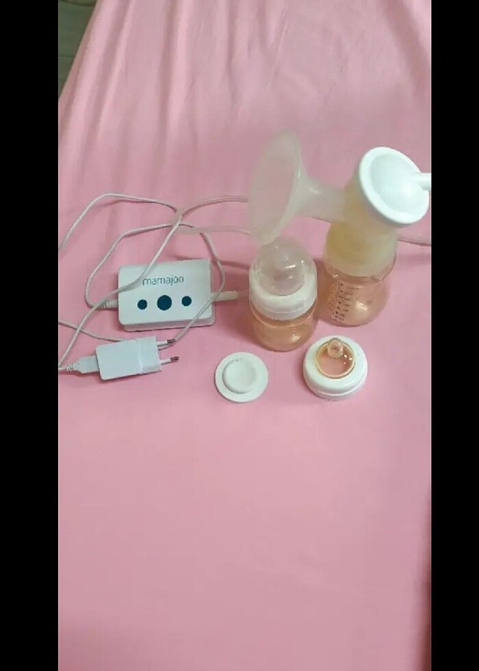 Mamajou marka süt sağım pompası Bir Büyük Bir küçük biberonu var elektrikli çalışır durumda yanında 2,5 kutuda süt saklama poşeti göndereceğim