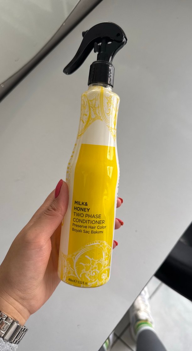 Süt ve bal içeren iki fazlı saç kremi, saç rengini korur ve bakım sağlar. Sprey şişede, kolay kullanım sunar. Saçı nemlendirir besler ve korur özellikle boyalı saçlar içindir