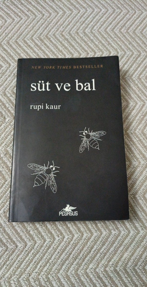 Rupi Kaur'un Süt ve Bal adlı şiir kitabı, New York Times bestseller listesinde yer alır. Kapakta arı çizimleri ve Pegasus logosu bulunur.