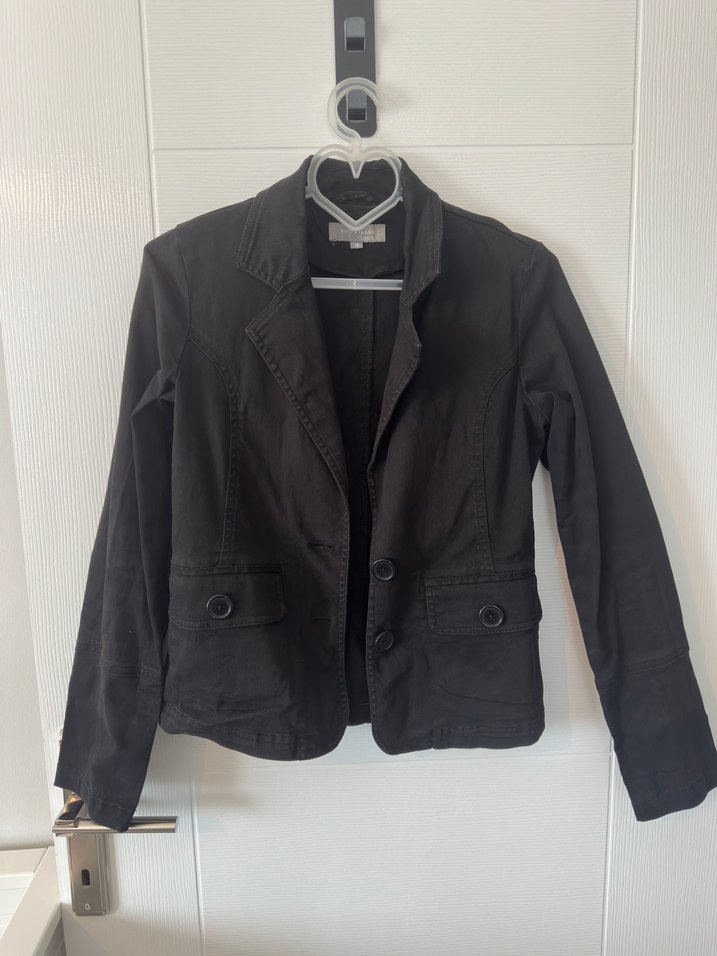 Sutherland pamuklu, siyah, az likralı blazer ceket. Az kullanılmış bir üründür. Az da olsa esnekliği vardır. Pamuklu olduğu için rahat bir üründür. Temiz kullanılmıştır, defosu yoktur.