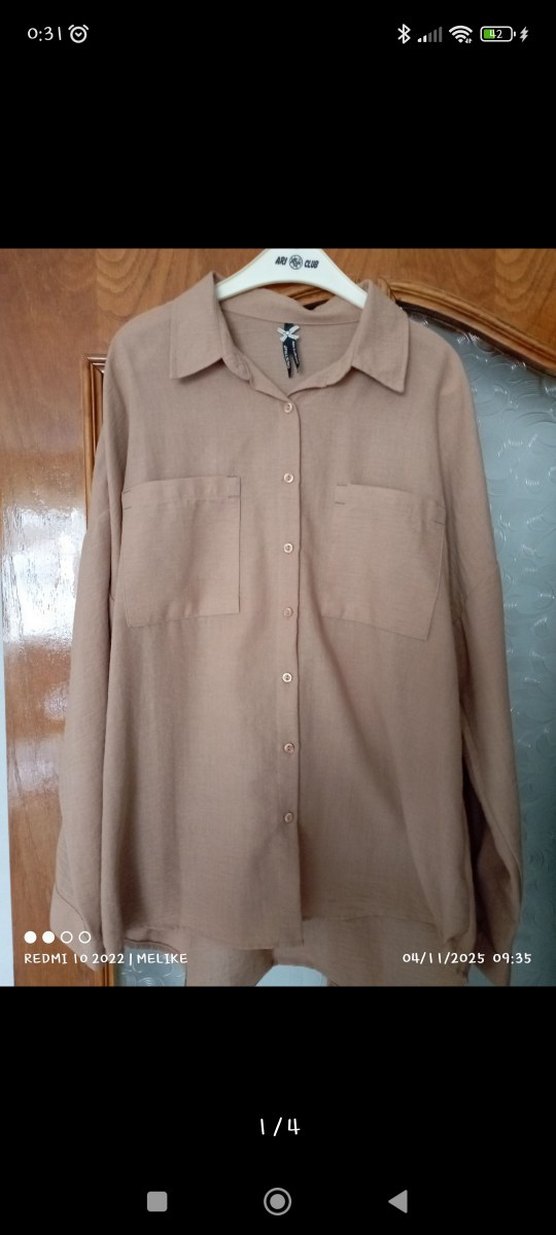 42 neden sütlü kahve renginde gömlek hiç kullanılmamıştır iade yoktur uzun kollu, düğmeli ve yakalı, bol kesim kadın gömlek. İki ön cep içerir, günlük şehir stiline uygun.