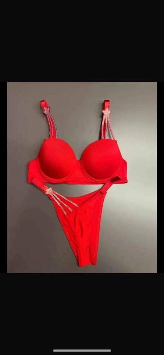 Kırmızı sütyen ve külot takımı, askılarda yıldız detayları ile çağdaş ve göz alıcı bir tasarıma sahiptir. 80 b ❤️