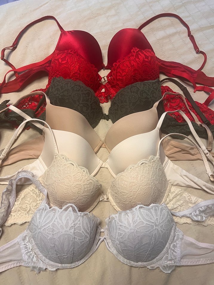 Hanımlar Göğüs bedenimdeki değişiklik nedeniyle Intimissimi ve PINK markalarına ait yeni sütyenleri satıyorum. Beden: 75B Yumuşak kalıplı kap, balensiz (telsiz) Durum: yeni, bazı etiketleri çıkarılmıştır, hiç kullanılmamıştır. Fiyat: orijinal fiyatın %50’si Kırmızı, haki,bej, krem,lila, ve beyaz renklerde dantel detaylı, ayarlanabilir askılı kadın sütyen. Rahat ve şık iç giyim ürünleri. Fiyat 1 adet icin!