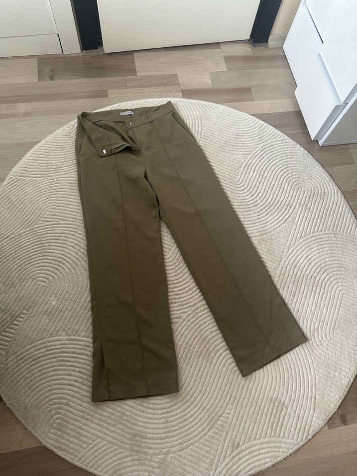 Haki renk, bol paça pantolon.
