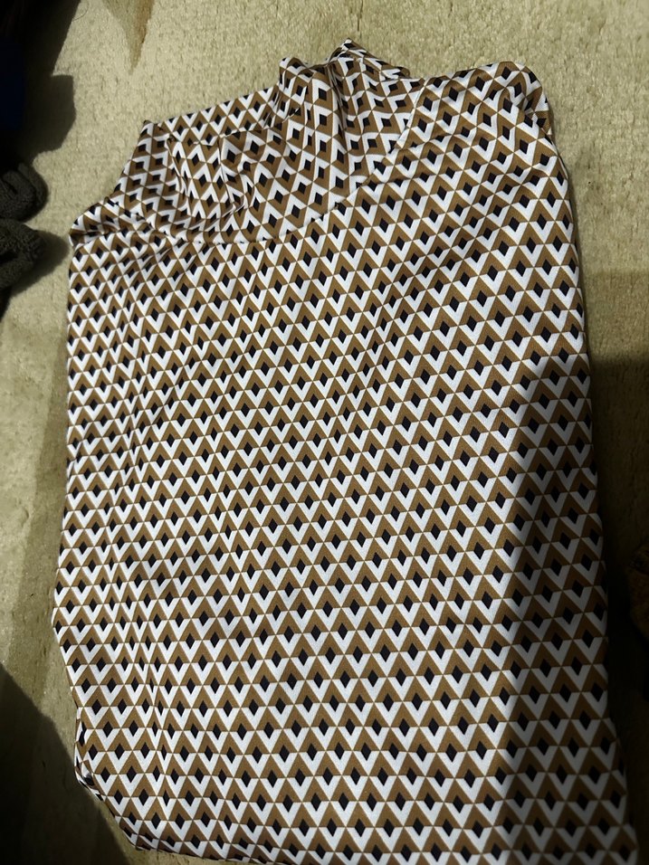 Sentetik kumaştan, kahverengi ve gri geometrik desenli parmak body