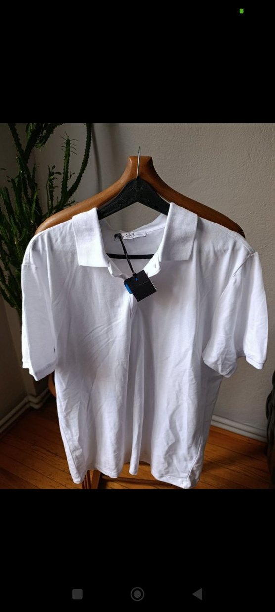 Erkekler için beyaz pamuklu polo tişört, yakalı ve kısa kolludur. Rahat kesimi ve gündelik şıklığıyla sokak modasına uygundur.