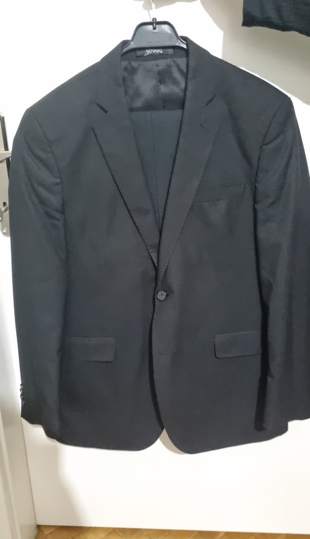 Siyah renkte, parlak yüzeyli ve klasik erkek ceketi