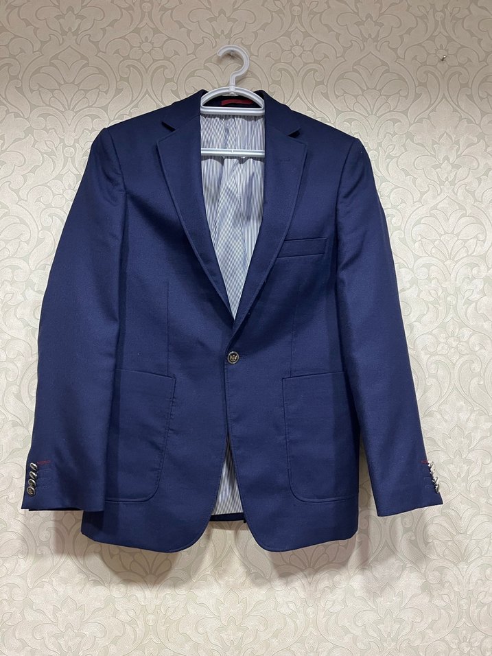 Düğmeli, parlak mavi renkli erkek ceket, klasik ve streetwear tarzında, ofis için uygun, normal boy, uzun kollu ve kesimi rahat. Süvari marka 46 Beden