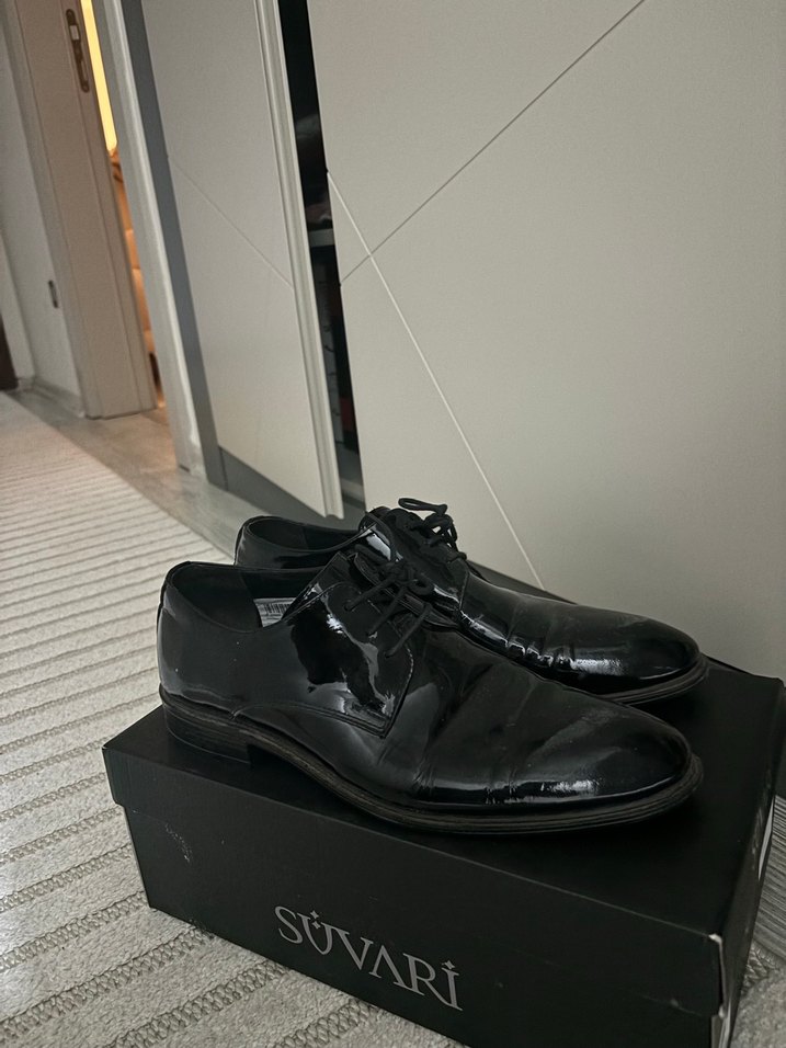Süvari markalı, parlak siyah rugan görünümlü klasik erkek ayakkabısı. Desensiz ve ofis ortamına uygun damatlık için alındı sadece bir defa giyildi 4700 tl fiyatı hiç bir sorunu yoktur