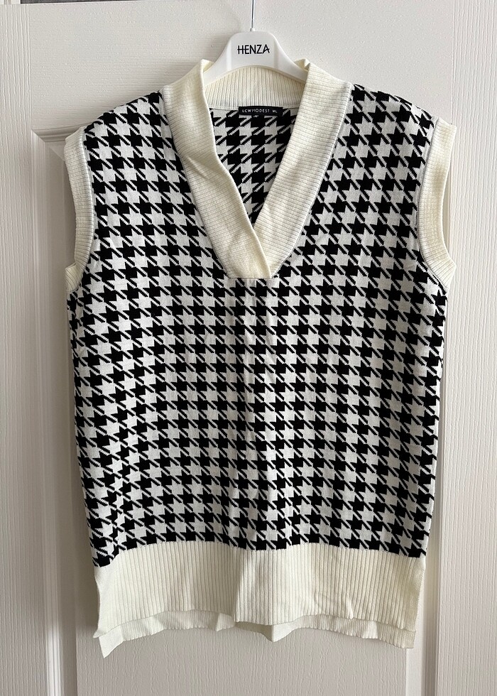 Kaz ayağı desenli süveter Boy 74 cm Ml bedenlidir
