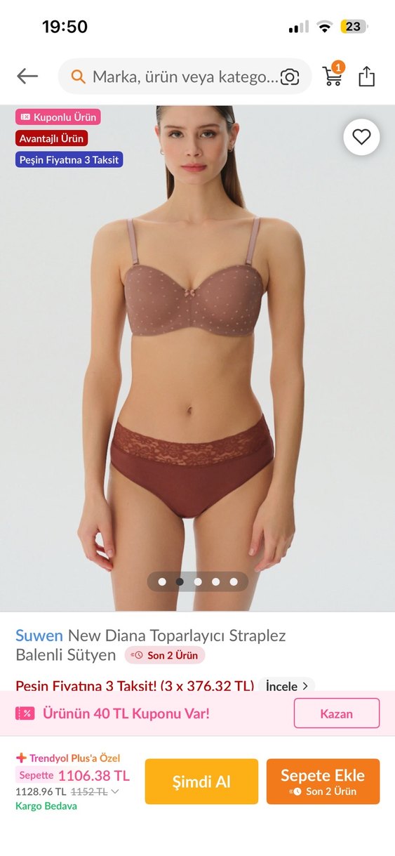 Kahverengi, balenli ve straplez tasarımlı bu sütyen, minimal ve desensiz yapısıyla doğal bir destek sunar. 85C beden bir kez giyildi denemek için yediden farksız tertemiz suwen trendyoldan alındı kendi mağazadından