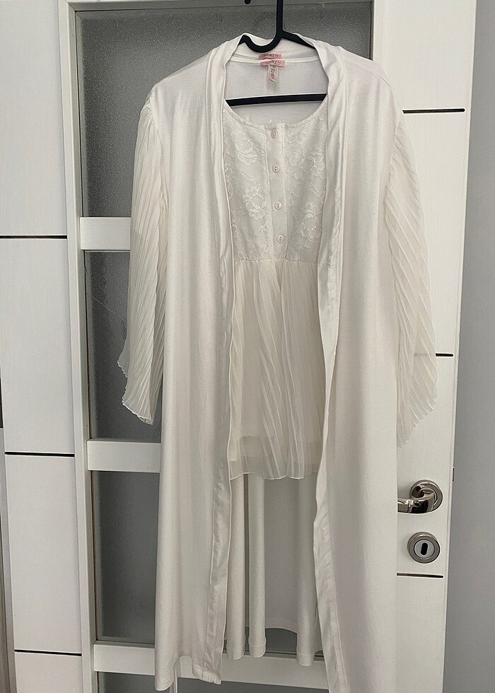 Sadece çekim için 1 kez kullanıldı. Pantalonlu pijama takımı ve sabahlık vardır. Yıkandı temizdir.