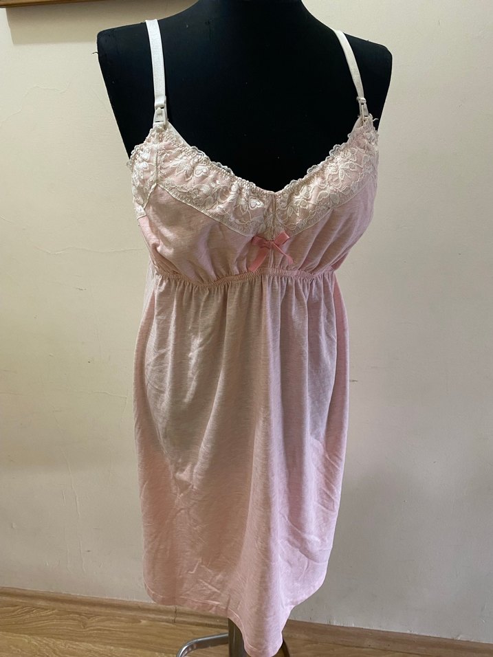 Suven lohusa Pembe pastel renkte, dantel detaylı, askılı tarz midi gecelik.