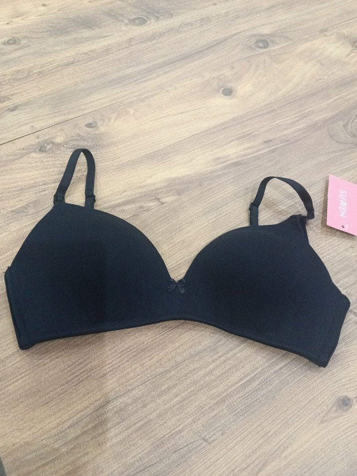 Ayarlanabilir askılı siyah minimalist sütyen, ortasında küçük fiyonk detayıyla günlük sokak stili için uygun.