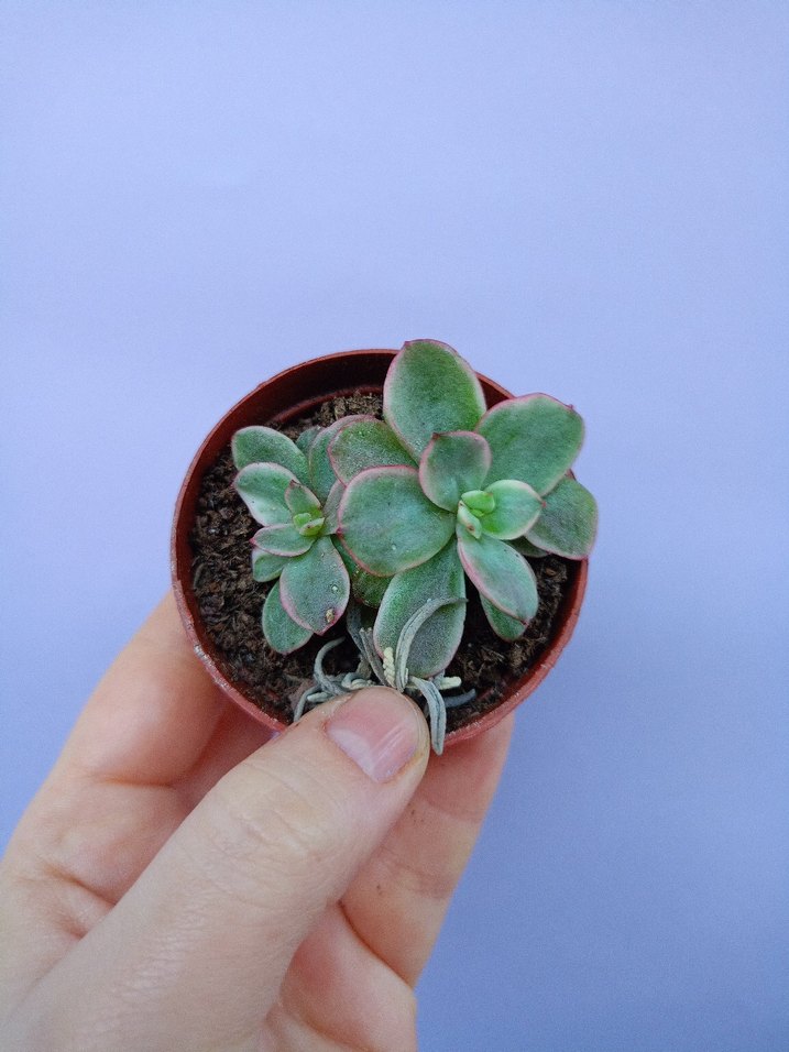 Kahverengi saksıda, pastel yeşil yapraklı küçük sukulent bitkisi, ev dekorasyonu için uygundur.