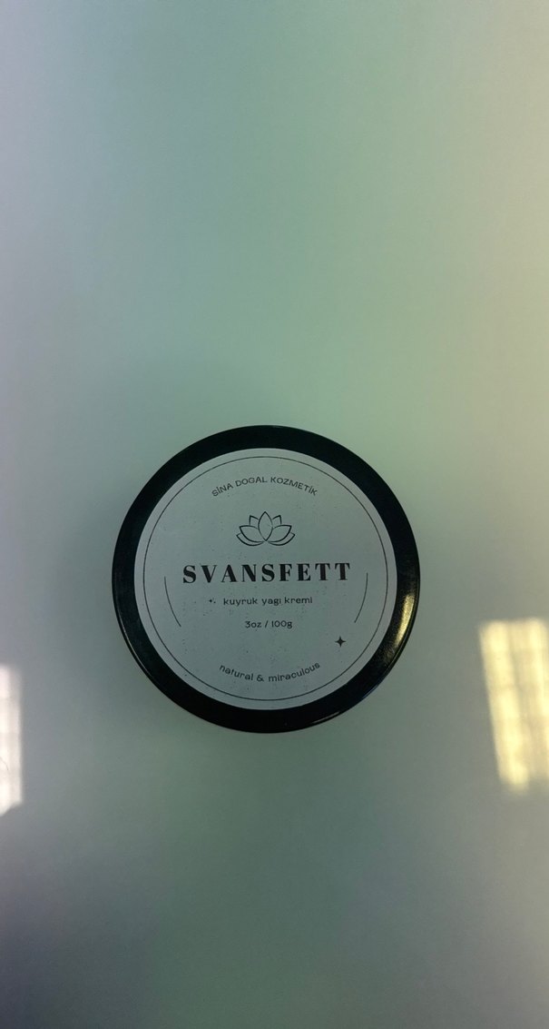 Svansfett, kuyruk yağı içeren doğal ve besleyici vücut kremidir. 100 gramlık kutuda sunulmaktadır.