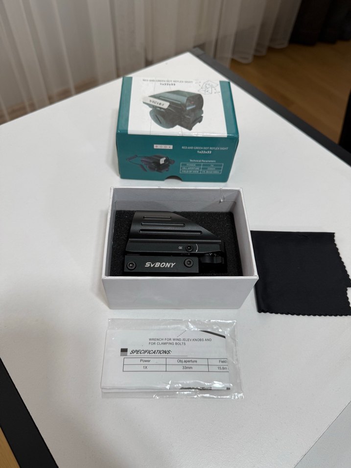 SvBony siyah tarayıcı, orijinal kutusu, temizlik bezi ve kullanım kılavuzuyla birlikte gelir. Kompakt ve hassas tarama için uygundur.