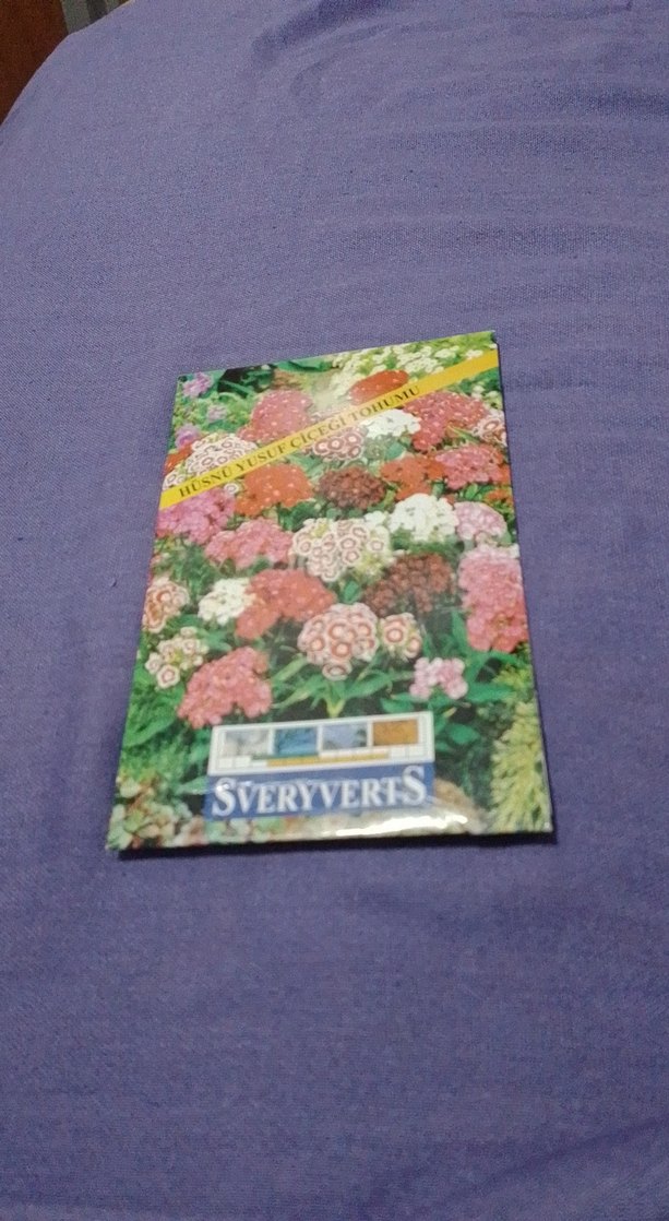 Renkli çiçeklerin yer aldığı Sveryverts çiçek tohumu paketi.