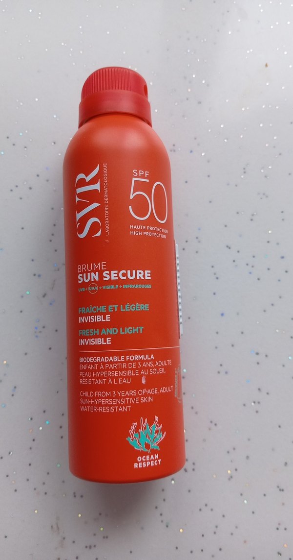 SVR Sun Secure SPF 50 sprey, yüksek güneş koruması sağlar. Ciltte görünmez, hafif ve taze formüllüdür. Suya dayanıklı, 3 yaş üstü çocuklar ve hassas ciltler için uygundur. Biyobozunur formülü okyanusa saygılıdır.