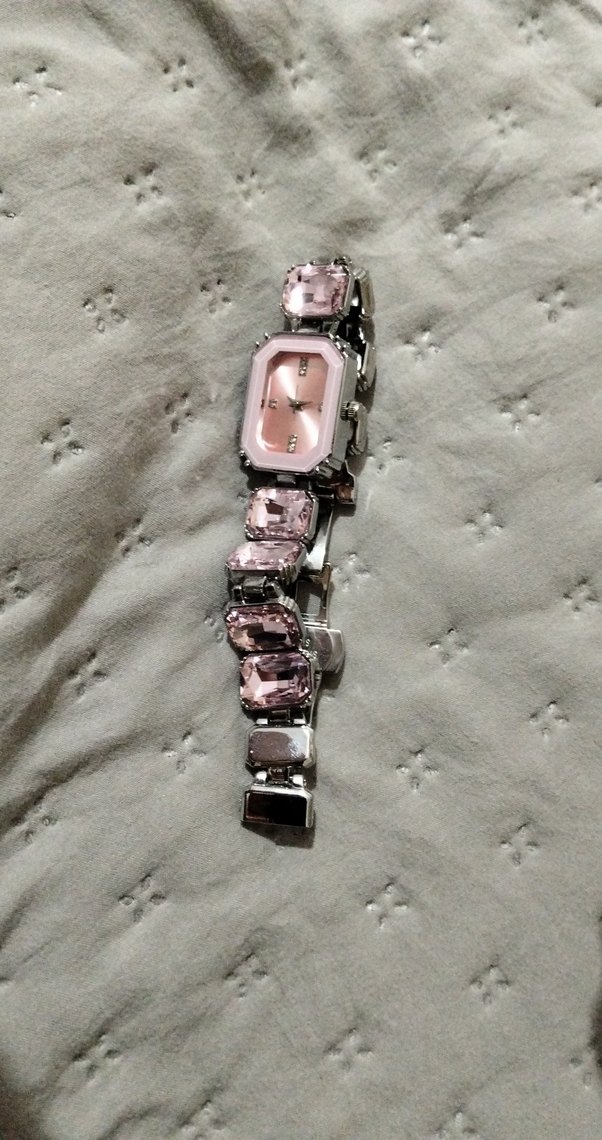 Pembe parlak taşlarla süslenmiş, çağdaş tasarıma sahip kadın saati. Bilezikte göz alıcı taş detayları bulunur. ⌚ kullanılmadı
