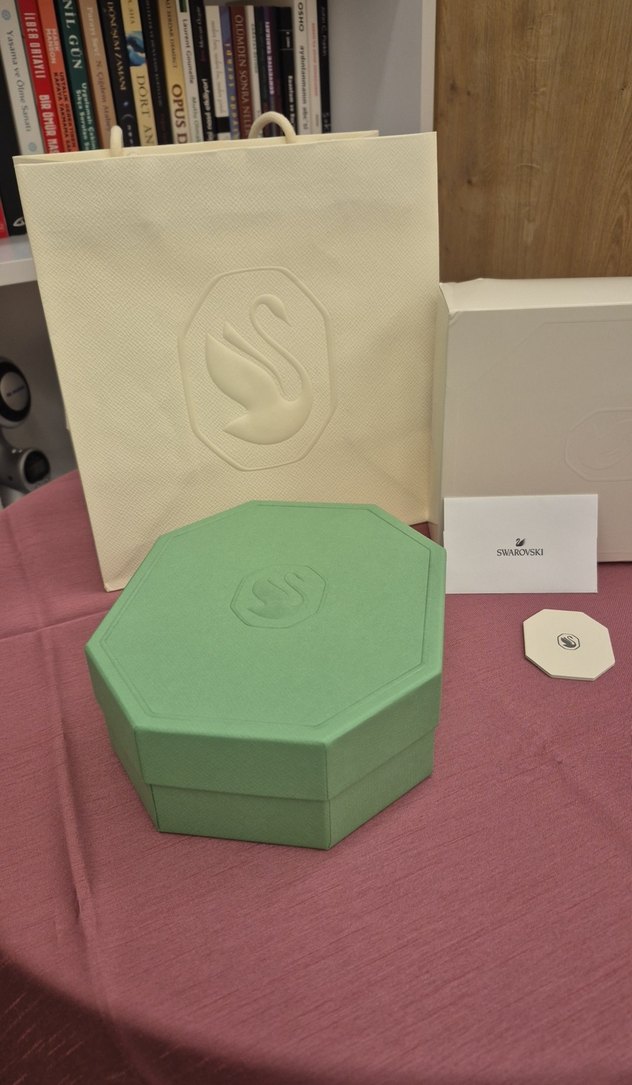 Yeşil Swarovski kolye & gerdanlık kutusu ve hediyelik beyaz karton çantası 21.5 * 17.5 cm ölçülerinde #Swarovski #kolye #kutu