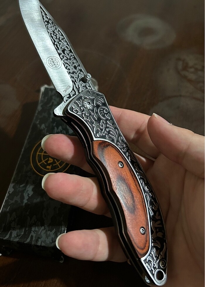 Gravürlü - Gül ağacı kabze - Kemer klipsli - Yarı oto yaylı - 22 cm