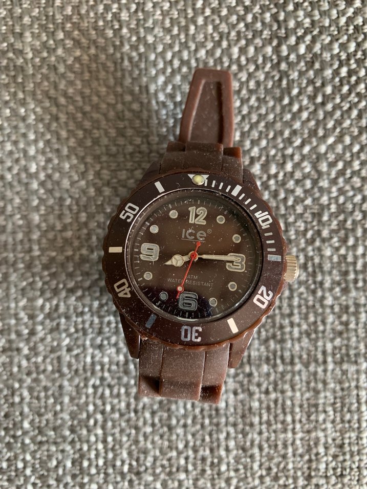 Swatch Koyu kahverengi, çocuk kol saati, vintage tarzında, net numaralı kadran ve dayanıklı kayış ile. ⌚