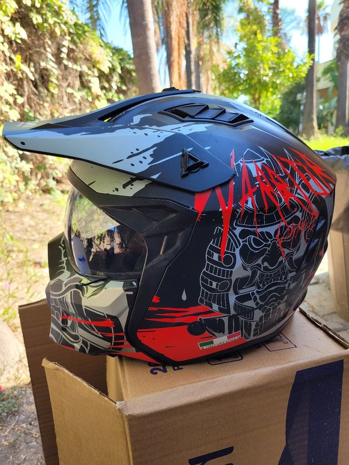 Koyu kırmızı baskılı, punk ve grunge tarzı motosiklet kaskı. Dayanıklı plastikten üretilmiş, güvenlik için tokalı kayış içerir. ️sway L BEDEN Kırmızı Baskılı Punk Tarzı Motosiklet Kaskı sway L BEDEN