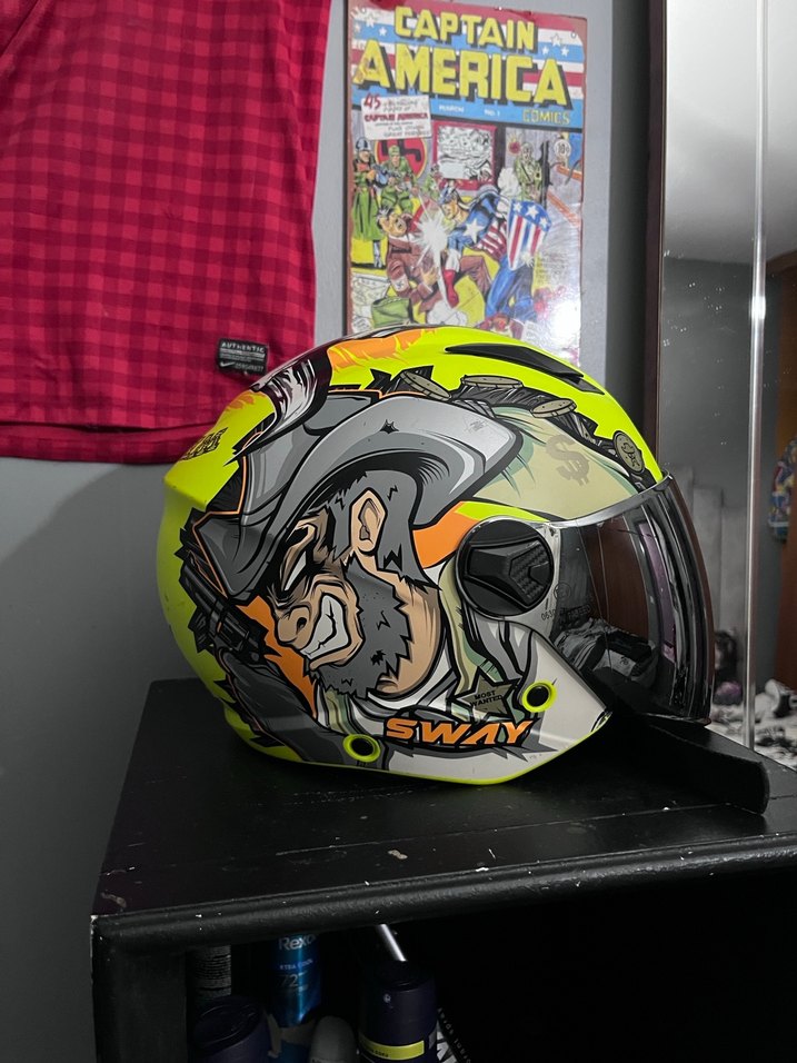 SWAY Sarı Renkli Baskılı Motosiklet Kaskı