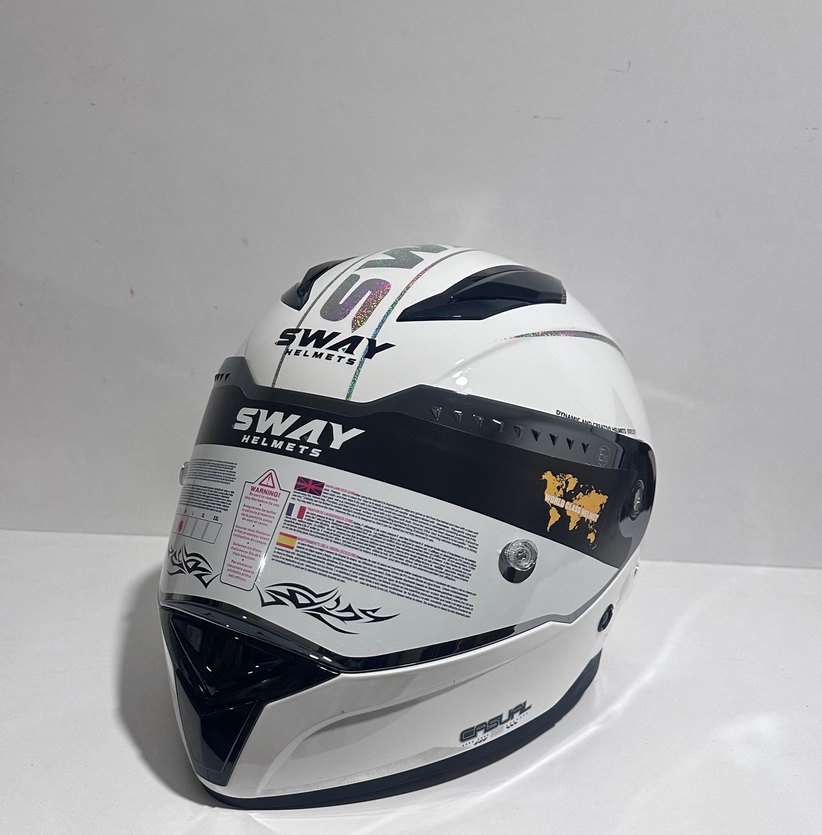 Sıfır ve kutuludur. M bedendir. Ölçüsü, 57-58 cm’dir. Anti-fog, buğu önleyici hediyelidir. #sway #white #fullface #helmet #kask
