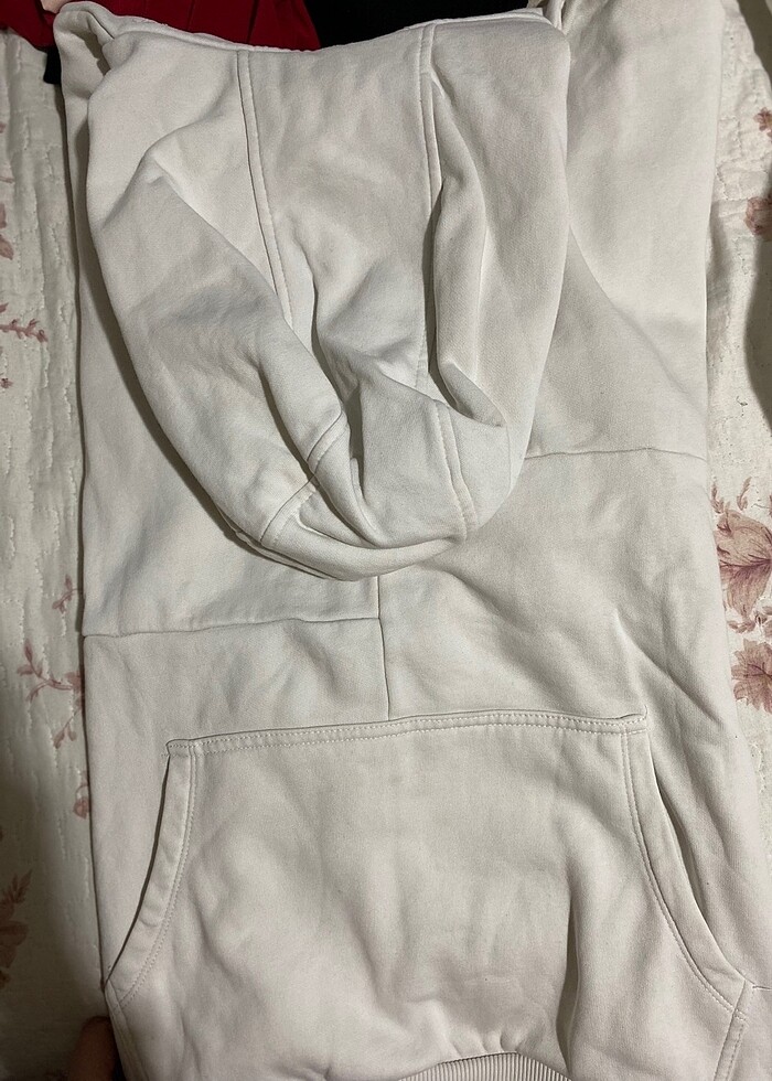 Kapüşonlu beyaz unısex sweat