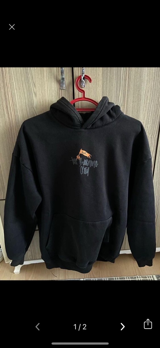 Siyah, uzun kollu, bol kesim sweatshirt. Baskılı desen yumuşak ve sıcak kumaştan üretilmiştir.