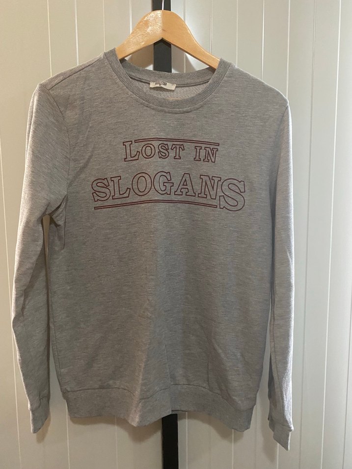 Gri renkli, uzun kollu ve yuvarlak yakalı sweatshirt. Keten kumaştan, "LOST IN SLOGANS" baskılı ve tokalı detaylıdır. Günlük kullanım için uygundur.