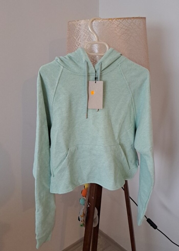 Kapüşonlu sırt çapraz açık şu yesili sweat