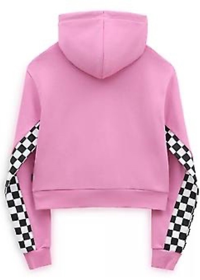 Lila kolları dama baskılı sweatshirt. Kanguru cepli, kapüşonlu. Beden:XS-S Bedenleri mevcuttur. Marka: köstebek